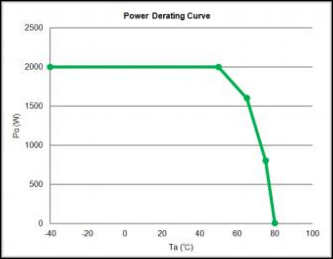 输出功率 | 2000W (176V AC~290V AC); 900W (85V AC~175V AC线性降额) |
